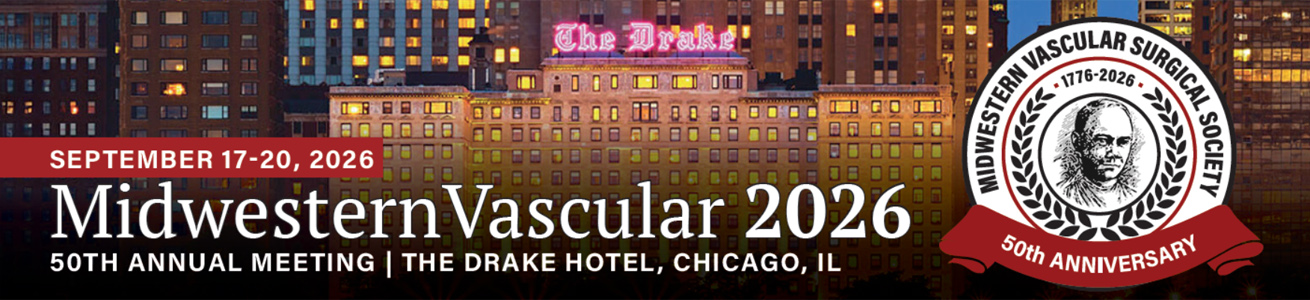 SAVE THE DATES!! Plan to join us as we celebrate the 50th Anniversary of the Midwestern Vascular Surgical Society, September 17-20, 2026 at The Drake Hotel in Chicago, IL. We’re taking it back to where it all began! Special this year, we will host a Black Tie (optional) Gala Dinner on Saturday night so plan to stay the weekend!
